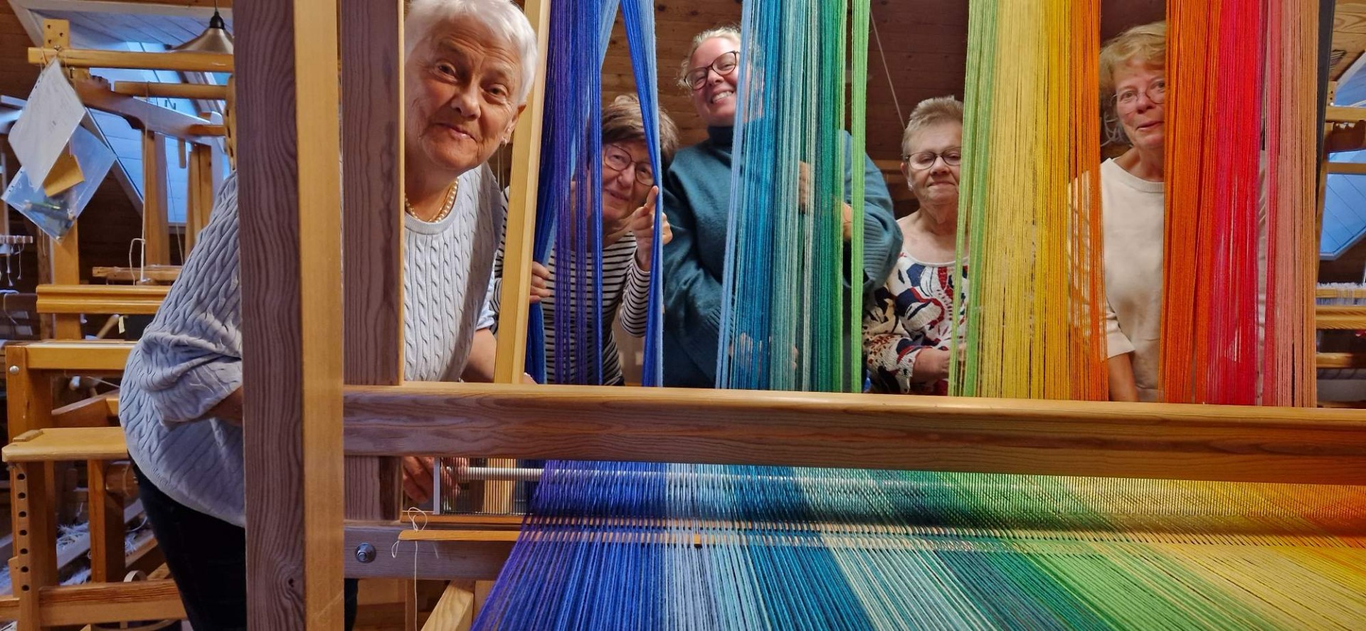 Här ser vi kvällsgruppen dra på den färgglada varpen.